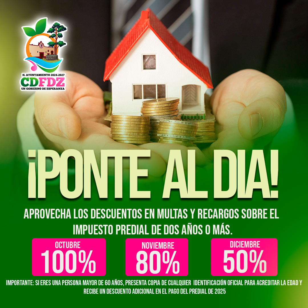 CatastroEl Gobierno Municipal invita a aprovechar los descuentos en el pago del Impuesto Predial 2026 Comunicacion Social17 horas ago17 horas ago01 mins Navegación de entradas Previous: Últimos Honores a la Bandera 2025 en Ciudad FernándezNext: PRESENTACIÓN DE CANDIDATAS FEREFER 2026